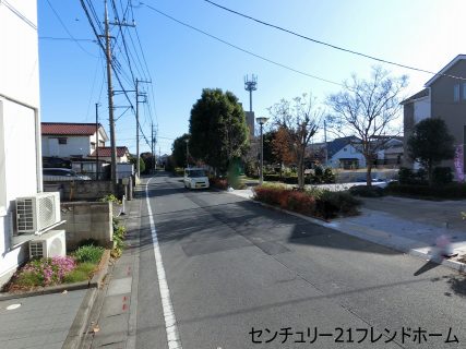 【前面道路】街路樹が植えてある遊歩道があります。お天気がいい日のお散歩は気持良さそうですね♪