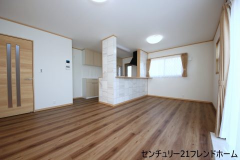 【LDK】15.5帖のLDKは濃い色の木目調の床と