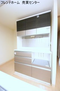 キッチンにはカップボードもついているので使い勝手がいいですね!