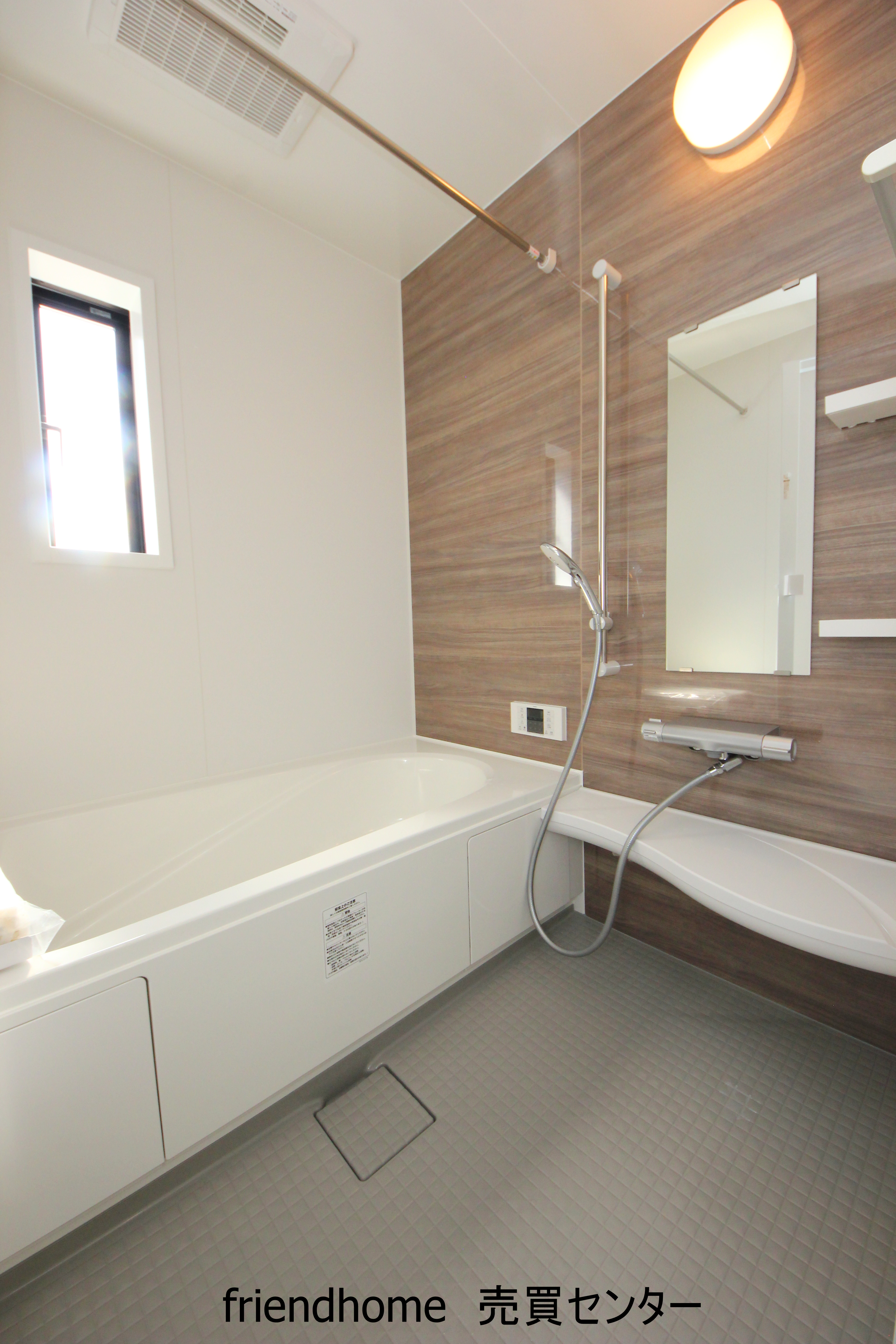 木目調のアクセントパネルの浴室です。新しいお風呂で毎日の疲れも癒されそうです。