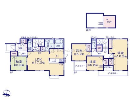 ロフトもついているので、秘密基地みたいで楽しい間取となっております。