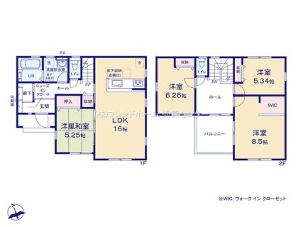 2号棟の間取です。(駐車スペースもゆとりがあり、将来的にも安心です。)