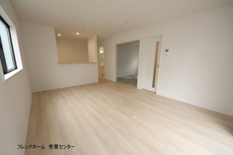 東向きの明るいリビングダイニングです。隣には和室もついているので来客時も安心です。