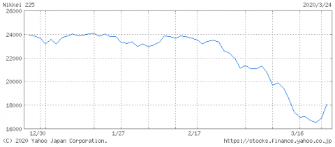 2月中旬から下がり始めた日経平均。ここ数週間は、乱高下を繰り返しながら暴落しています。