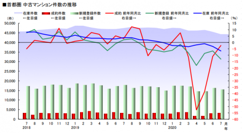 コロナ禍で成約数・成約価格が落ちていた中古マンション・中古戸建ですが、2020年7月の首都圏マーケット情報ではコロナ前の水準に戻りつつあります。また首都圏のみならず、近畿圏、中部圏も同様に回復傾向にあるようです。