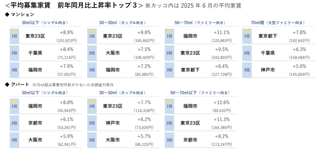 単身者向けの賃貸住宅の家賃も平均10万円超